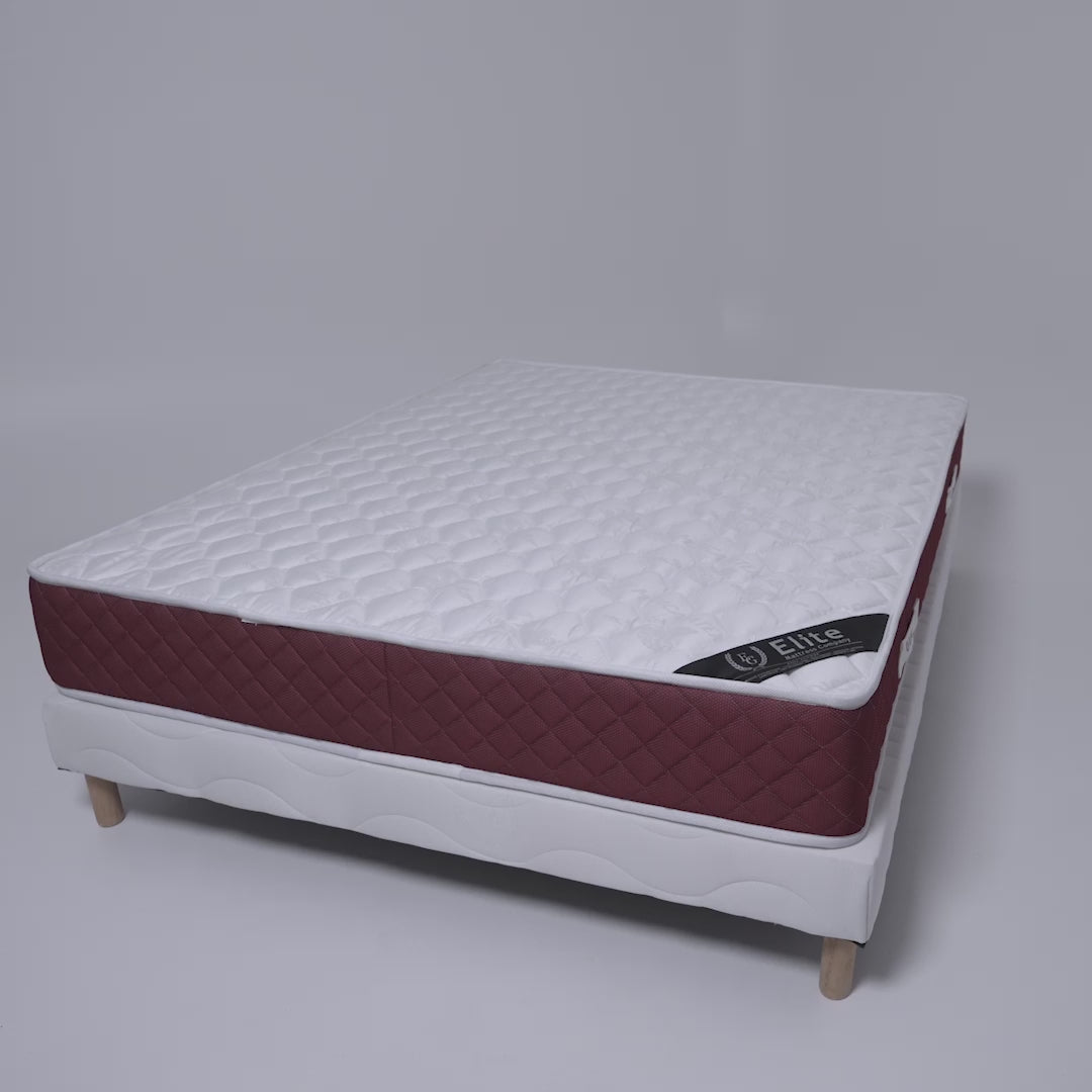 L'ensemble Matelas Rosso + sommier est conçu afin de permettre un soutien équilibré pour un maintien optimal du corps. Son âme en mousse polyuréthane permet un confort ferme et soutien équilibré pour optimiser le maintien de votre colonne vertébrale. Garni d'une ouate mixte coton 550gr en fibre creuse hypoallergénique et ignifugé 200gr, Il assure un accueil ferme pour un meilleur soutien répondant à toute les normes sécuritaires et hygiéniques. Ce matelas est recouvert d’un coutil piqué en stretch hypoallergénique traité antibactérien et antiacarien. Les bandes latérales sont en tissu respirant 3D rouge avec 2 galons décoratifs et 4 poignées.