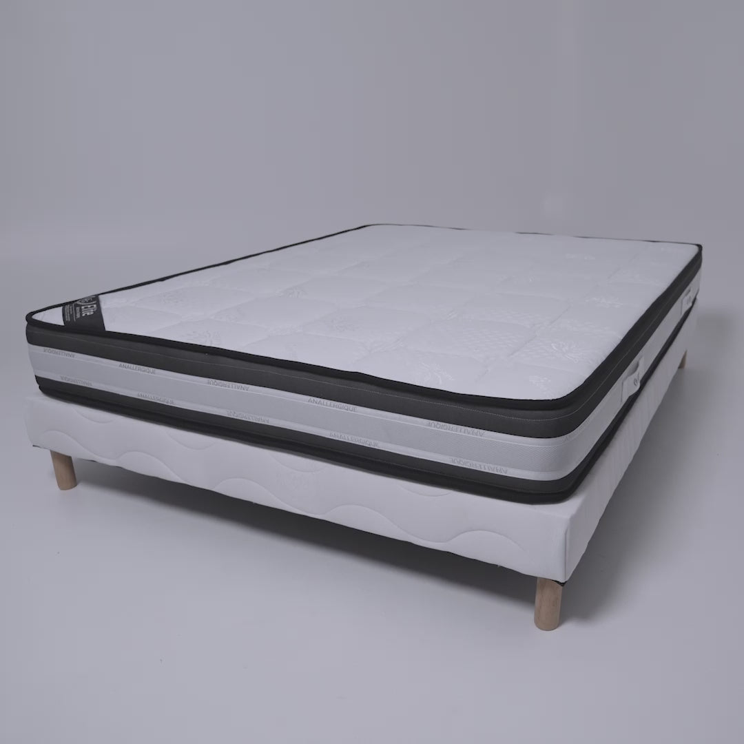Le Matelas Grand confort d'une hauteur de 22cm est conçu pour permettre un soutien ferme en gardant un accueil équilibré pour un meilleur confort. Son âme en mousse polyuréthane équilibré d’une densité de 25kg/m3 permet confort optimal. Garni avec une ouate mixte coton 550gr en fibre creuse hypoallergénique et ignifugé 200gr, Il assure un accueil équilibré pour un meilleur soutien répondant à toute les normes sécuritaires et hygiéniques. Ce matelas est recouvert d’un coutil piqué en jacquard hypoallergénique traité antibactérien et antiacarien. Les bandes latérales sont en tissu respirant piqué noir et blanc avec 4 poignées.